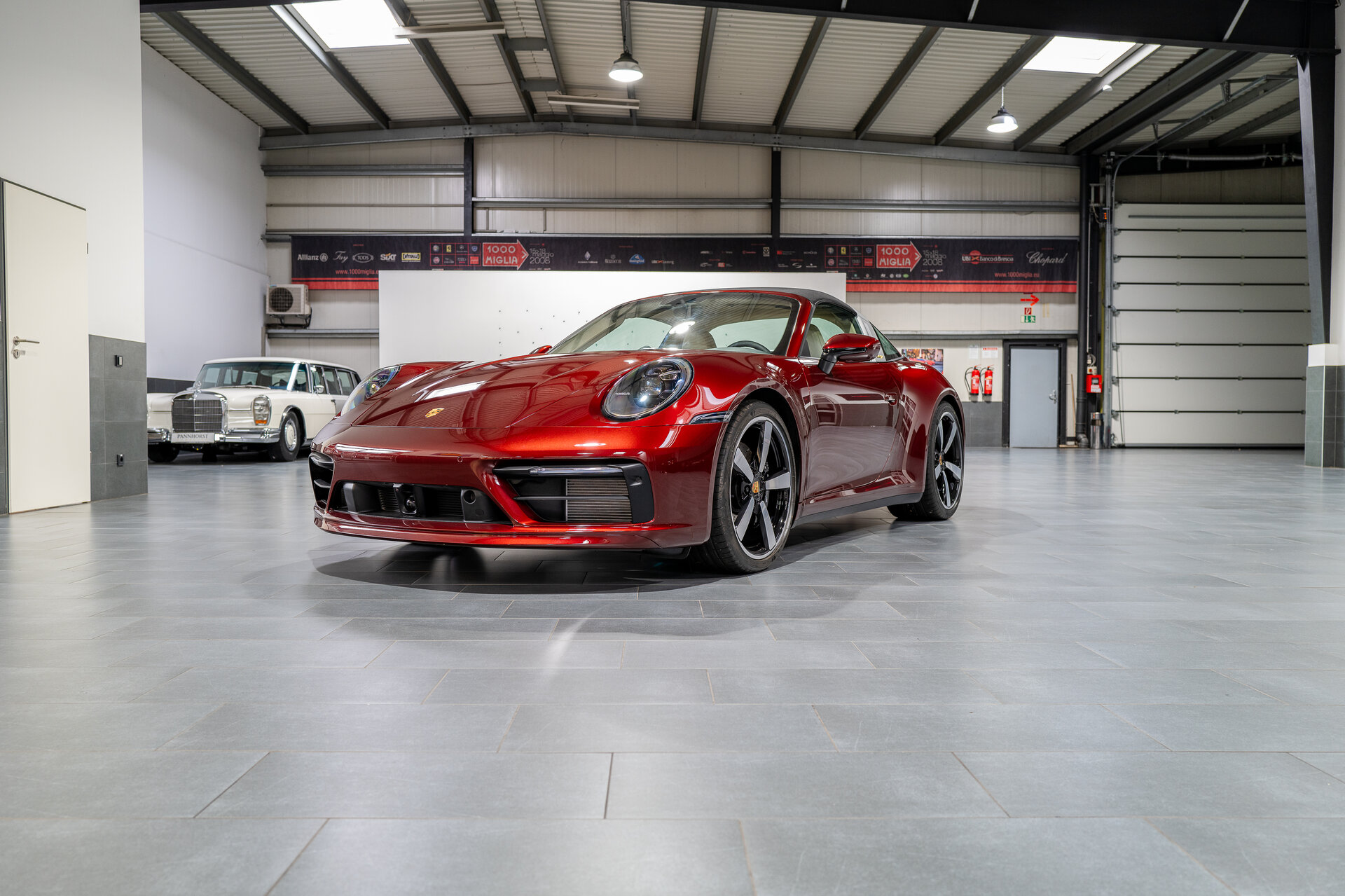 Airbag Fahrer-/Beifahrerseite, Aktentasche Leder, Antriebsart: Allradantrieb, Außenspiegel elektr. verstell- und heizbar, beide, Außenspiegel schwarz lackiert, Blinkleuchten LED, Bremssättel schwarz (Hochglanz), Connect Plus (Bluetooth, Apple CarPlay, WLAN, Vehicle-Tracking-System), Dekor-/Zierstreifen Motorsport, Design-Paket Heritage, Diebstahl-Warnanlage mit Innenraumüberwachung, Drehzahlmesser, Einschaltautomatik für Fahrlicht, Einstiegsblenden mit Modellbezeichnung (Aluminium), Fahrassistenz-System: Berganfahr-Assistent (Hill-Holder), Fahrassistenz-System: Kollisionswarnsystem mit Bremseingriff und Fußgängererkennung, Fahrzeugschlüssel in Wagenfarbe lackiert inkl. Leder-Etui, Fußmatten, Getränkehalter, Heckscheibe heizbar, Heckspoiler, Innenraumfilter: Aktivkohlefilter (Geruchsfilter), Innenspiegel Leder, Isofix-Aufnahmen für Kindersitz an Beifahrersitz, Karosserie: 2-türig, Keyless Drive, Kleiderhaken Sitzrückenlehne Leder, Klimaautomatik 2-Zonen, Komfortzugang (Schlüssellose Türentriegelung), Kopf-Airbag-System Porsche Side Impact Protection System (POSIP), Kopf-Schulter-Airbag vorn (Thoraxbag), Lamellen Lufteinlass im Heckdeckel lackiert, Lenkrad (Sport/Glattleder, 3-Speichen) mit Multifunktion, Lenksäulenverkleidung Leder, LM-Felgen, Matrix-LED-Scheinwerfer, abgedunkelt, inkl. Porsche Dynamic Light System Plus (PDLS+), Modellbezeichnung lackiert, Motor 3,0 Ltr. - 331 kW KAT, Otto-Partikelfilter (OPF), Parkbremse elektrisch, Porsche Active Suspension Management (PASM), Porsche Communications Management (PCM) inkl. Online - Navigationsmodul, Porsche Torque Vectoring Plus (PTV Plus), Porsche Traction Management (PTM), Radioempfang digital (DAB+), Radnaben - Abdeckungen Porschewappen farbig, Reifendruck-Kontrollsystem, Rücksitzlehne geteilt/klappbar (40:20:40), Schadstoffarm nach Abgasnorm Euro 6d, Schriftzug Porsche lackiert, Schwellerabdeckung / -verkleidung, Sicherheitsgurte farbig, Sitzheizung vorn, Sonnenblenden Leder, Sport Taste, Sportendrohre 4-Rohr-Optik, Sportsitze Plus - Rückenlehnen Leder, Dekor Leder, Start/Stop-Anlage, Tankdeckel Exclusive Design, Targa, Turbo, Uni-Lackierung, Vehicle-Tracking-System (PVTS), Verdeckbetätigung elektrisch, Verglasung getönt, Ziffernblatt Drehzahlmesser, farbig, Ziffernblatt farbig, Sport Chrono Stoppuhr
