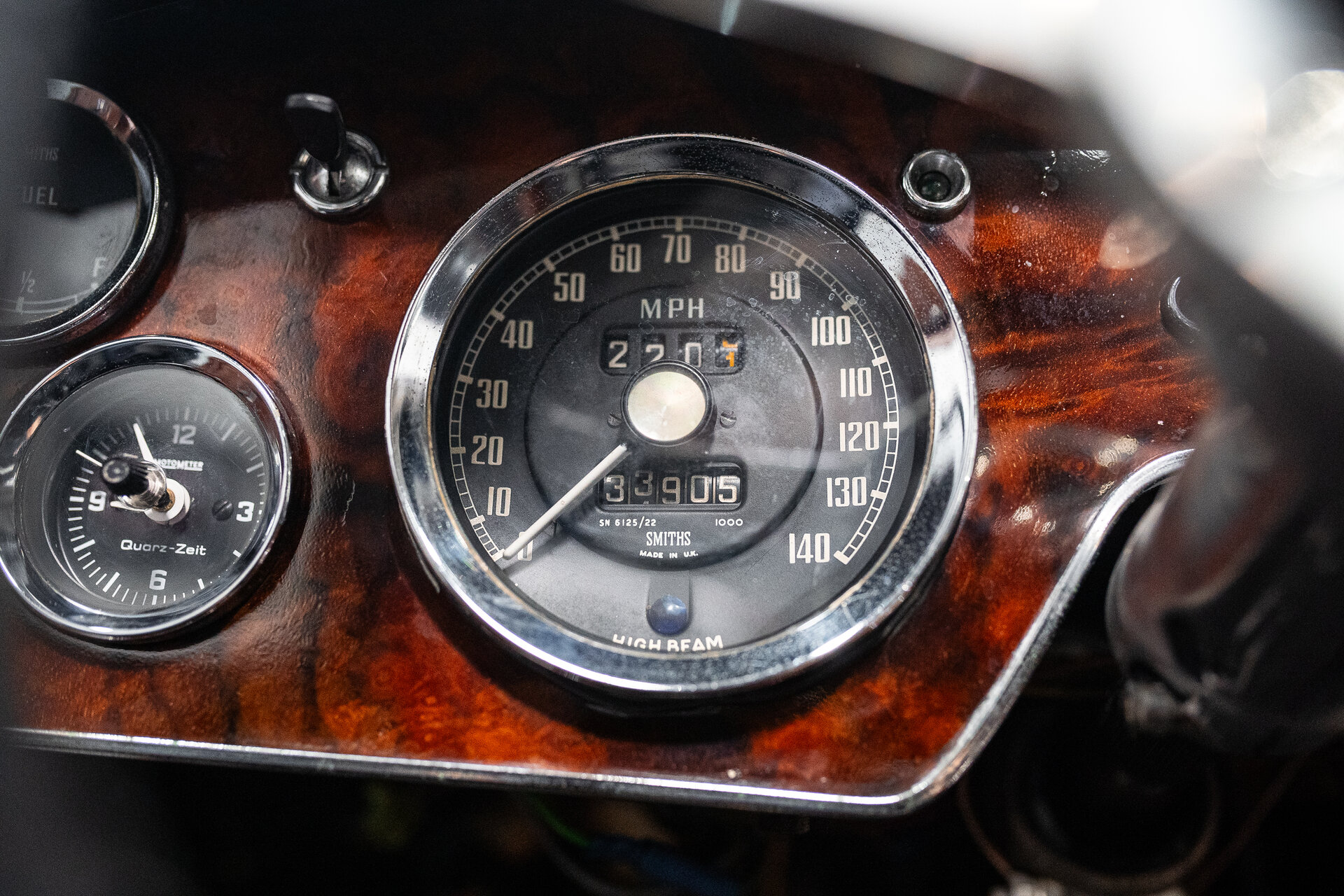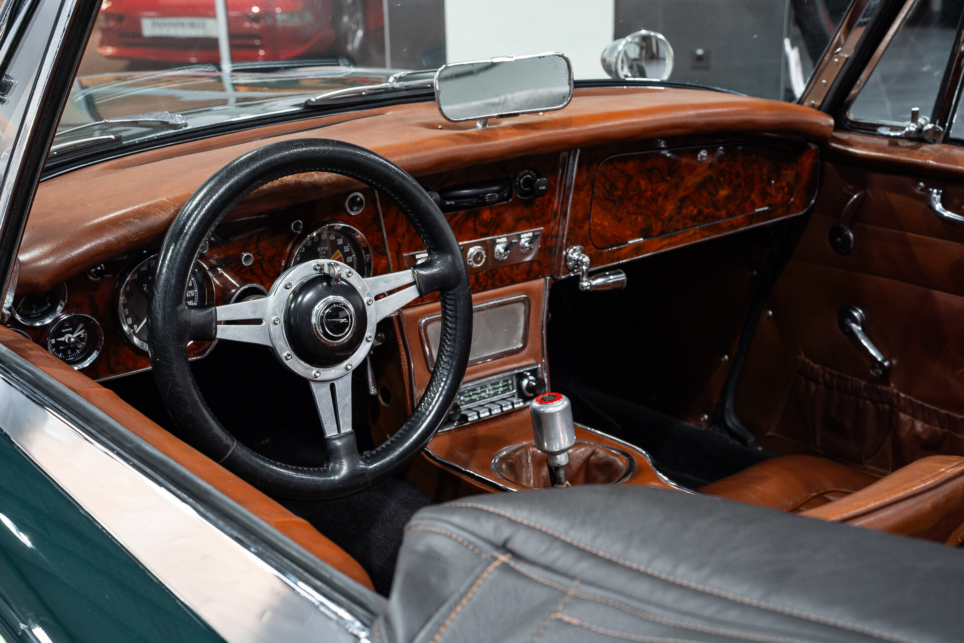 Dieser Healey wurde vor über 30 Jahren von Stefan Sautter mit großer Sorgfalt und technischer Finesse umgebaut. Die Karosserie ist vorne und hinten dezent verbreitert – optisch harmonisch und fahrdynamisch überzeugend.