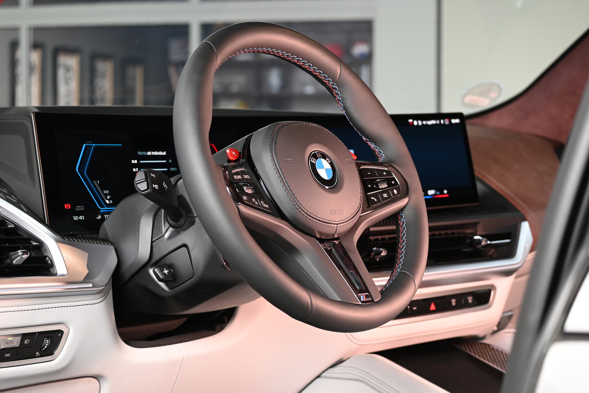 Exterior equipment: Shadow-Line high-gloss (extended scope), BMW individual paintwork Dravit-Grey Metallic, driving assistance system: Driving Assistant Professional, interior equipment: BMW Individual full leather Merino with exclusive scopes (Silverstone), LM rims front/rear: 10x23 / 11x23 (Star spoke 923 M, bicolor, black / jet black, high-gloss milled), soft-close automatic for doors and trunk / tailgate, Bowers & Wilkins sound system, universal garage door opener