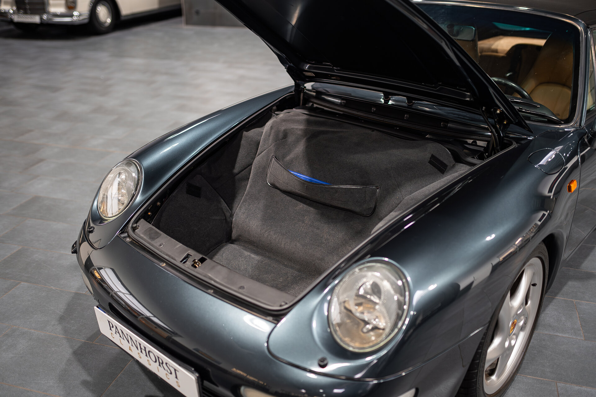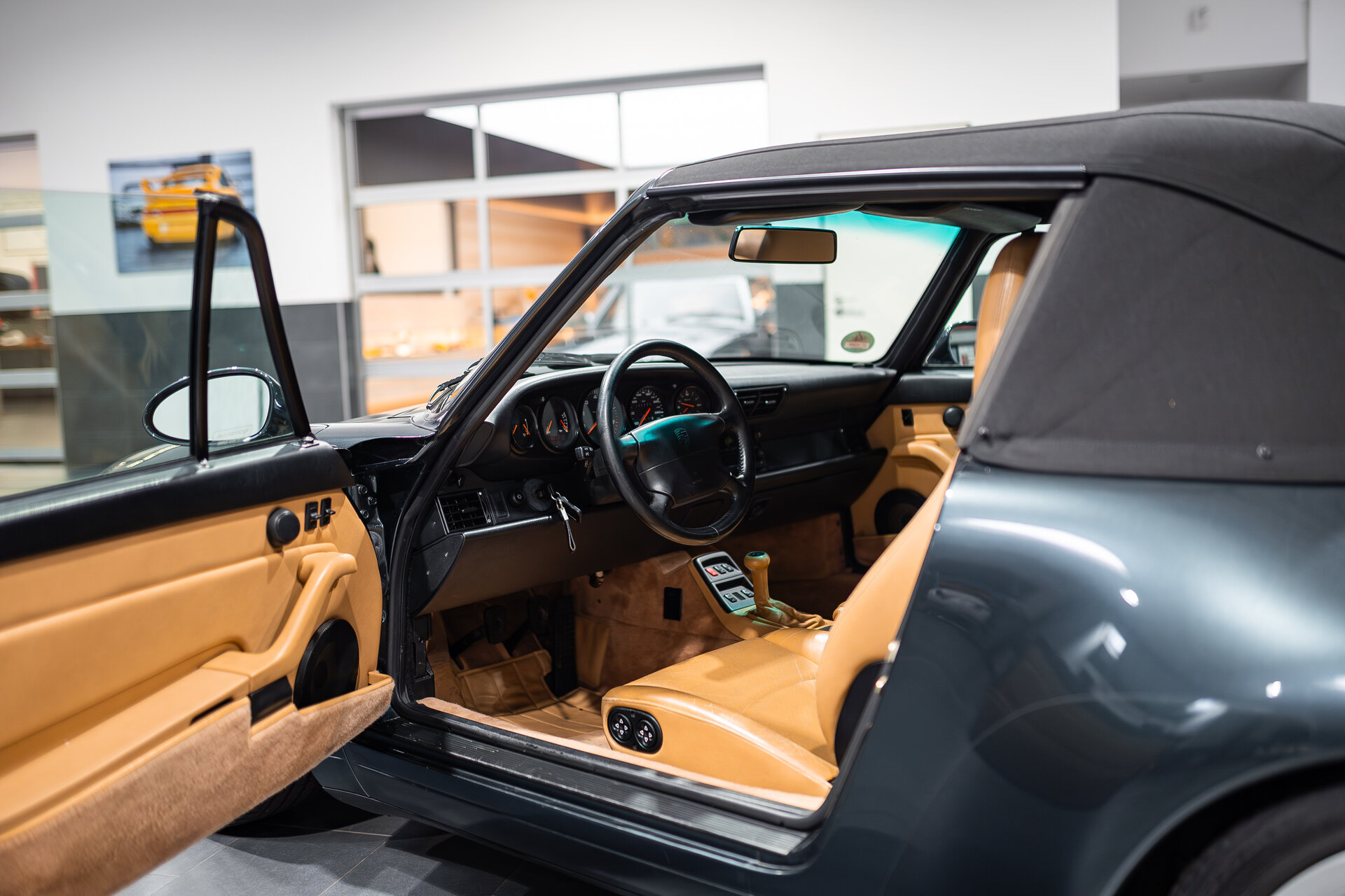 Klassische Form, ikonischer Charakter – dieses 993 Cabriolet aus dem Jahr 1995 besticht durch seine außergewöhnliche Farbkombination in Aventura Grün Metallic mit beiger Lederausstattung. Die geringe Laufleistung von nur 71.000 km sowie die dokumentierte Servicehistorie bei Pannhorst Classics unterstreichen den gepflegten Zustand dieses Fahrzeugs. Ein schwarzes Stoffverdeck, das Windschott und die Klimaanlage sorgen für Komfort bei jeder Ausfahrt.