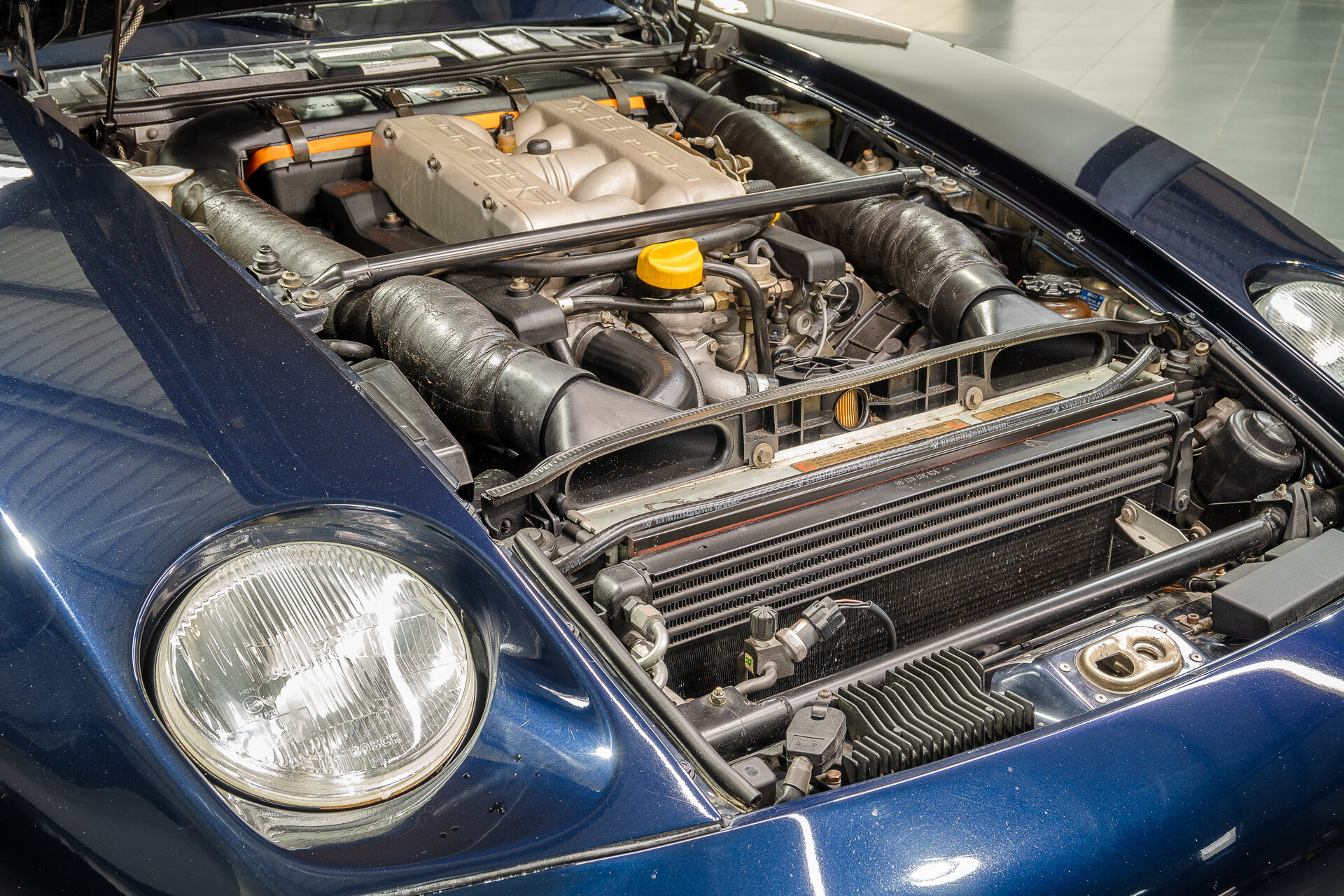 The car received a comprehensive service in 2016 and has since been professionally stored. The technical maintenance was carried out exclusively in the Porsche Center. The vehicle is in perfect technical condition. The exterior paintwork in night blue shows slight signs of wear in the form of stone chips, while the interior impresses with Porsche Exclusive equipment in magenta.