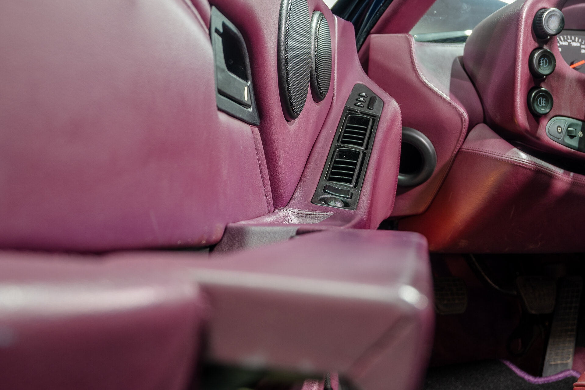 Das Fahrzeug befindet sich in technisch einwandfreiem Zustand. Die Außenlackierung in nachtblau zeigt leichte Gebrauchsspuren in Form von Steinschlägen, während das Innere mit einer Porsche Exklusiv Ausstattung in Magenta beeindruckt.