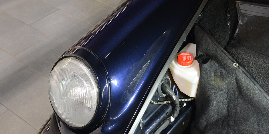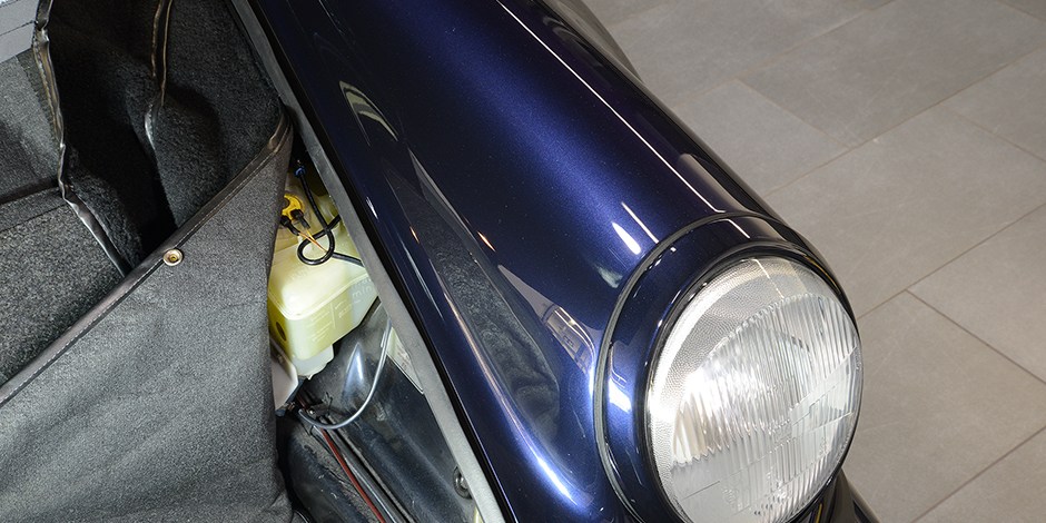 Das Fahrzeug wurde bei uns im Hause demontiert und anschliessend neu Lackiert in der Originalfarbe. Im Zuge dessen wurden alle Dichtungen erneuert.