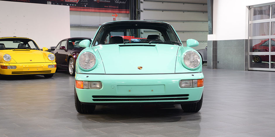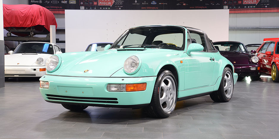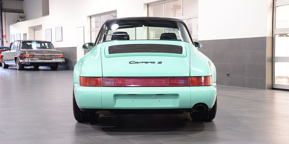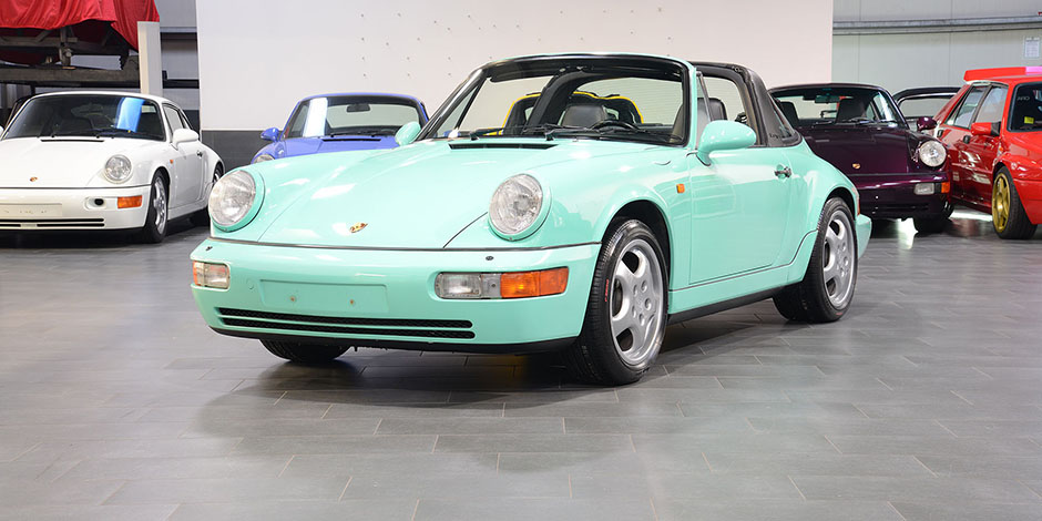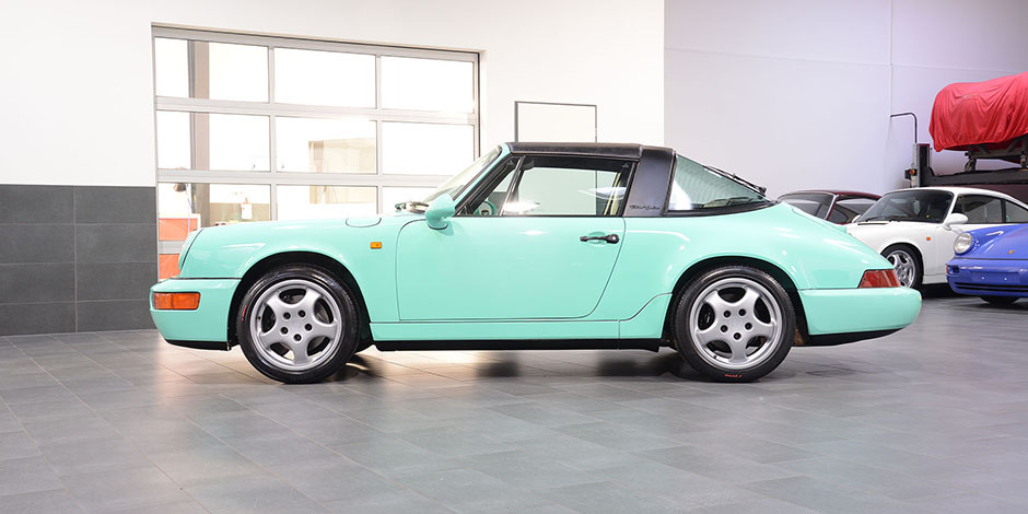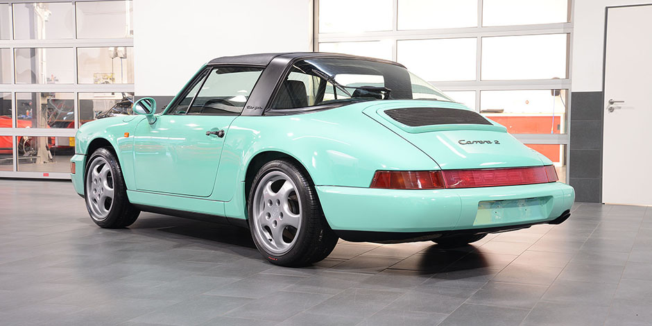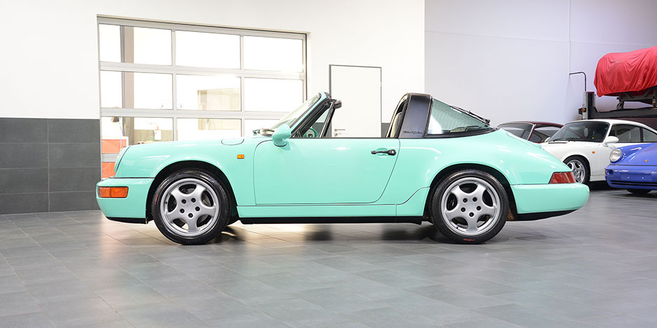 Porsche 964 Carrera 2 Targa in der seltenen Farbe Mintgrün.
