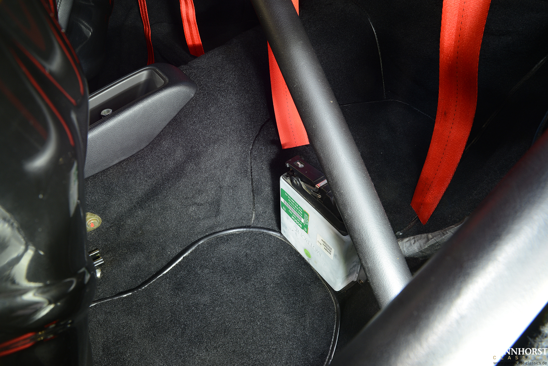 Bei der Innenausstattung sind die Sitze sowie der Überrollkäfig beledert und der Fussraum ist mit Tepich ausgekleidet.