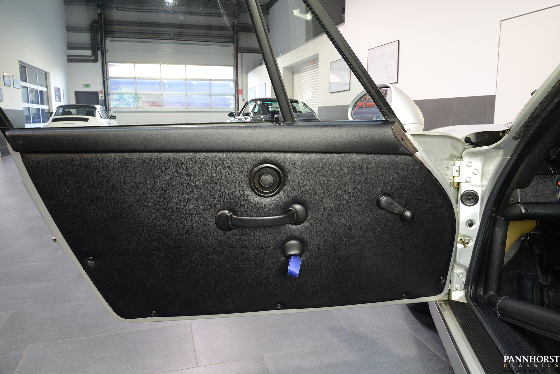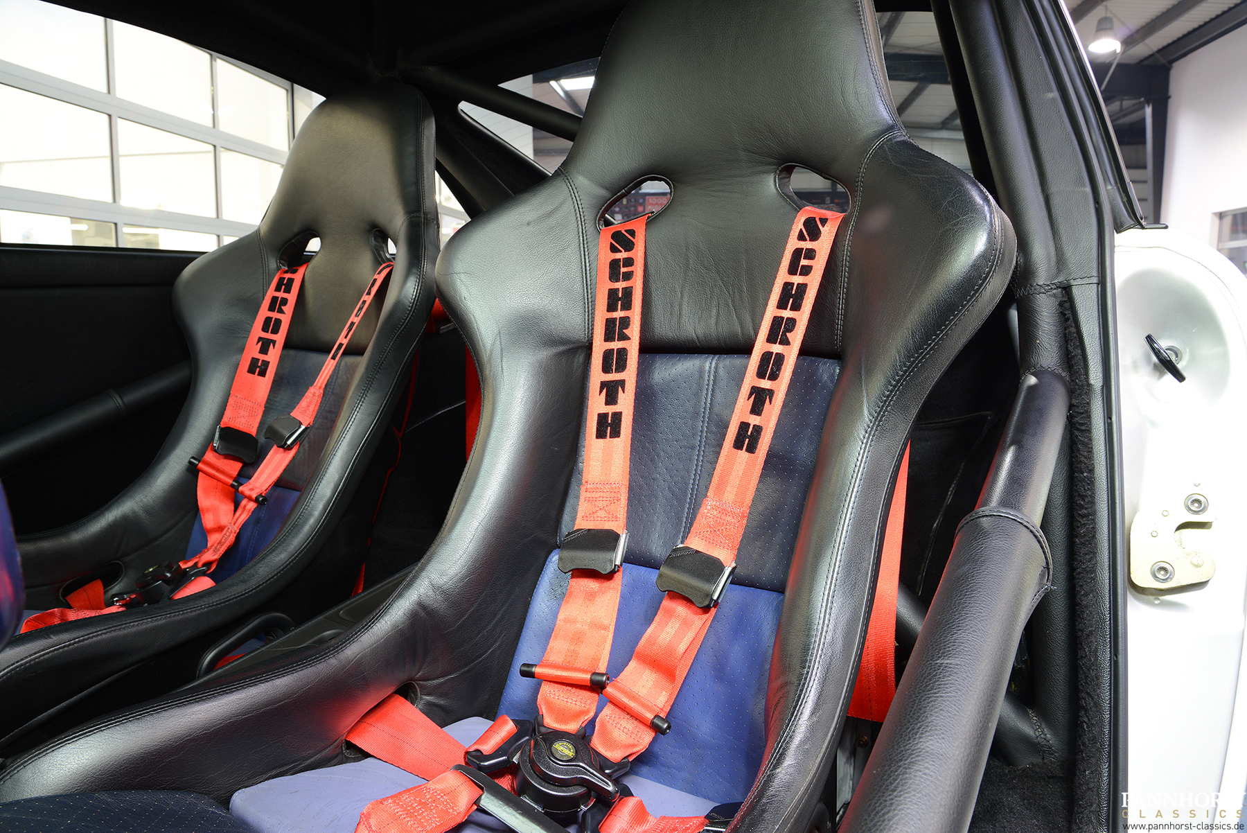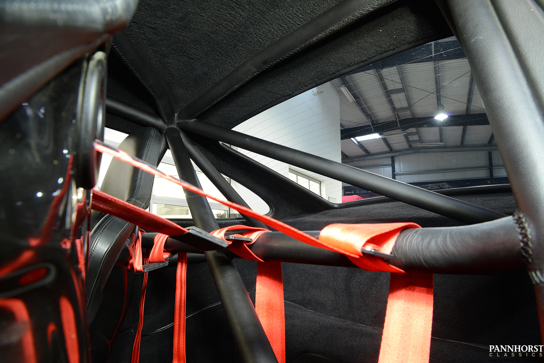 The interior of the seats and the roll cage are leather-covered and the footwell is lined with carpet.