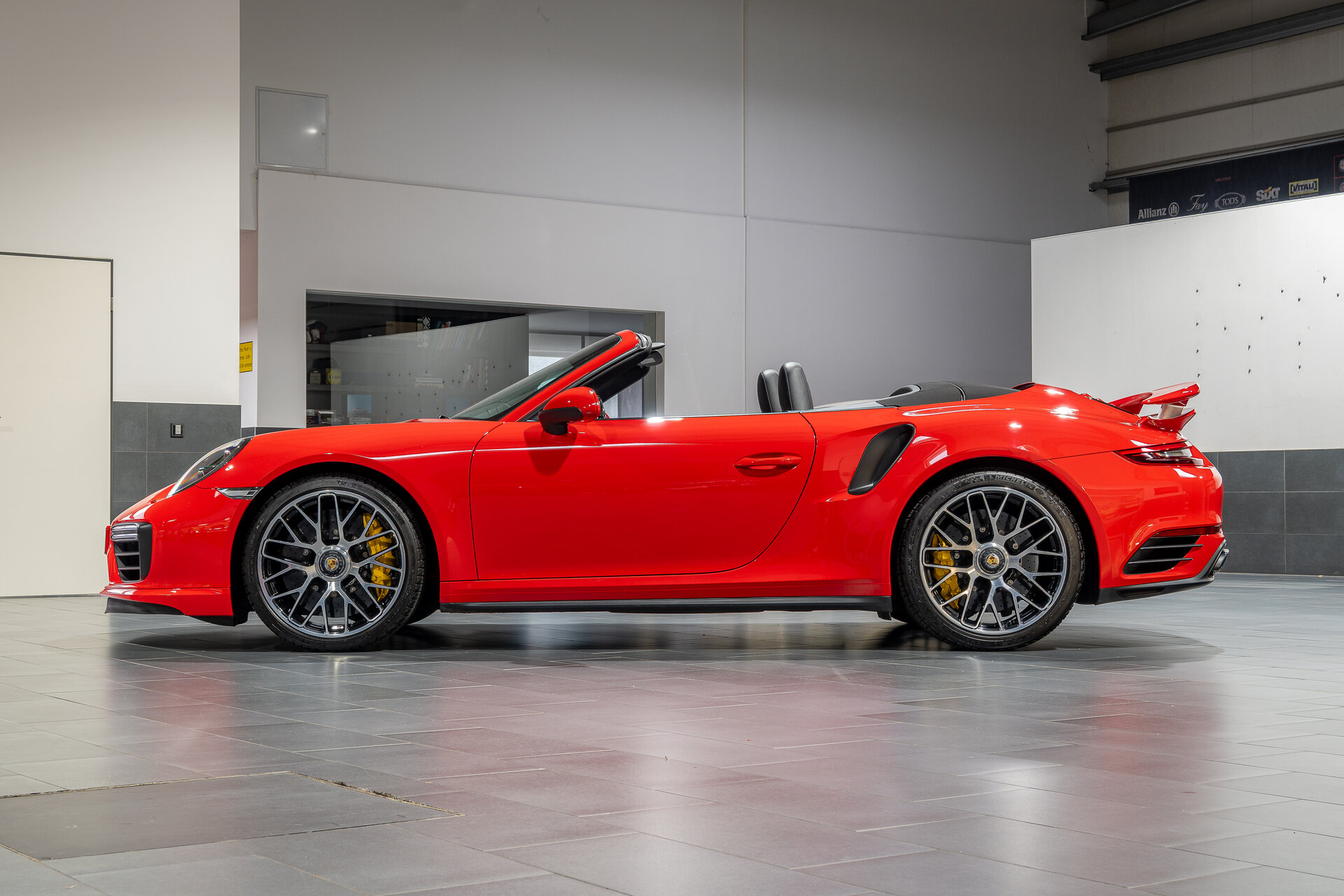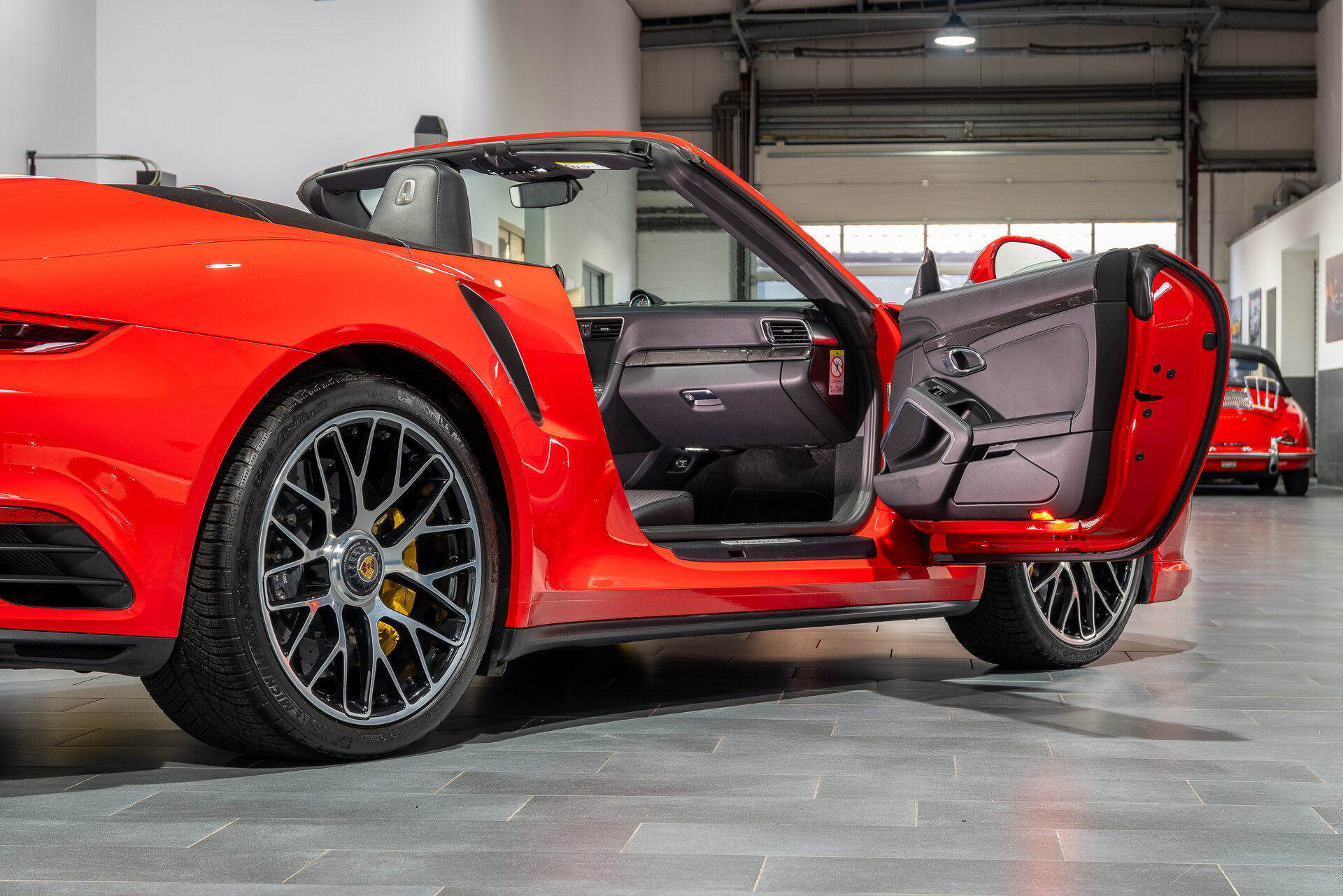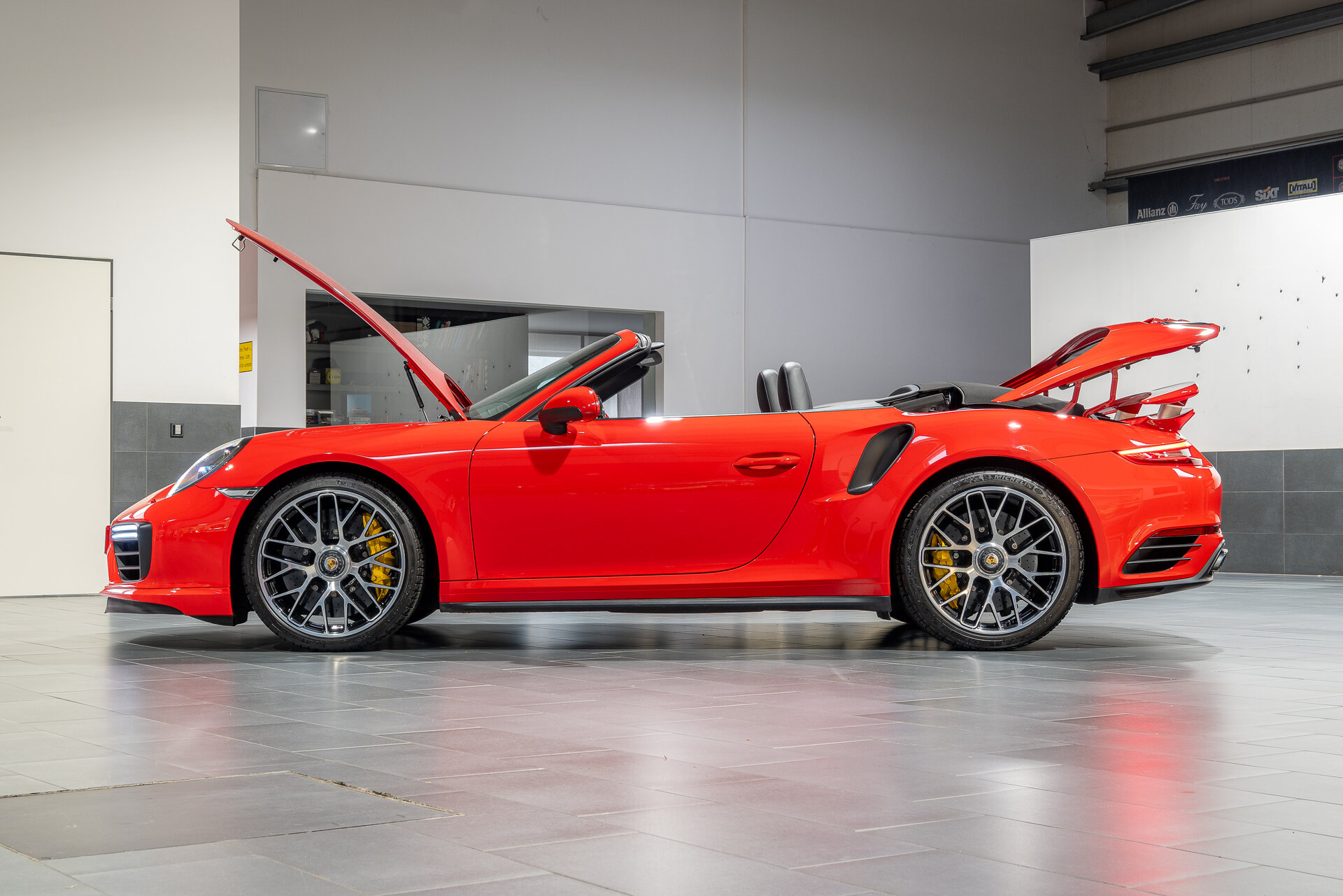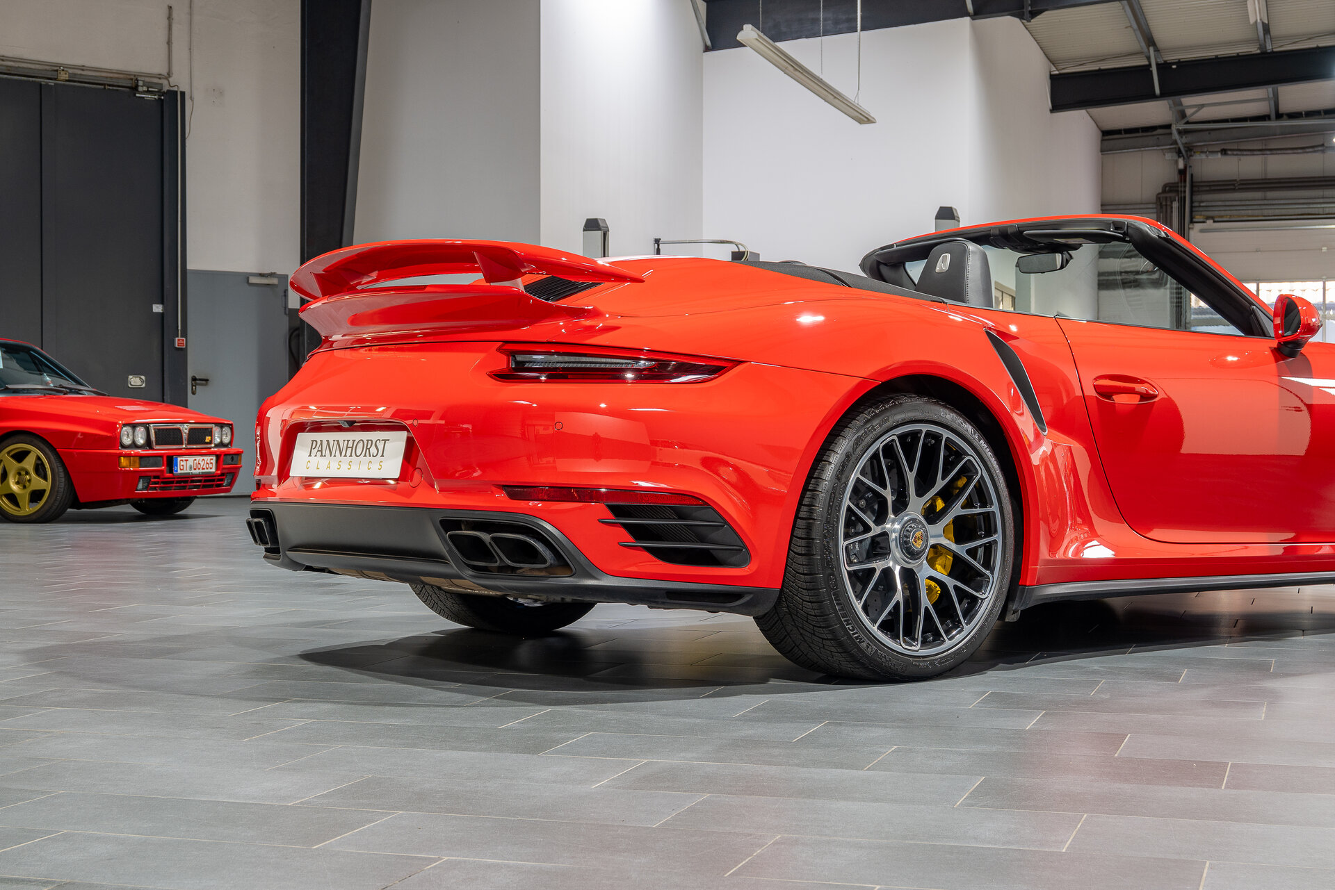 Porsche 991.2 Turbo S Cabriolet in Indischrot mit schwarzem Interieur