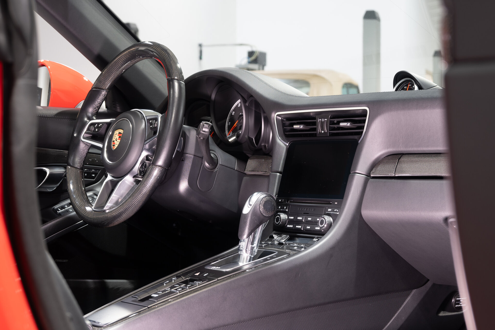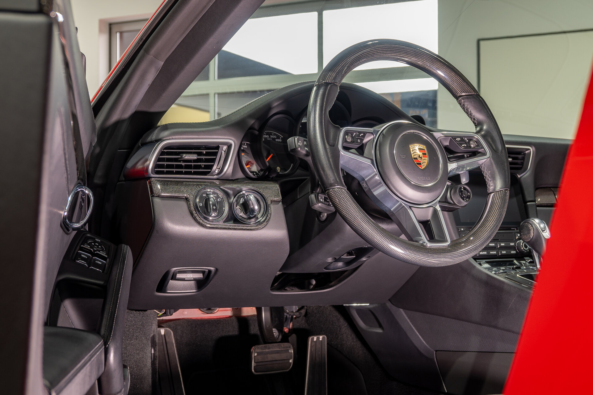 Airbag Fahrer-/Beifahrerseite, Antischlupfregelung (ASR), Automatisches Bremsen Differential (ABD), Außen-/Innenspiegel mit Abblendautomatik und Regensensor, Außenspiegel asphärisch, links, Außenspiegel elektr. verstell- und heizbar, beide, Außenspiegel Sport Design, Bordcomputer, Bremssättel Gelb lackiert, Cabrio, Connect Plus (Bluetooth, Apple CarPlay, WLAN, Vehicle-Tracking-System), Einschaltautomatik für Fahrlicht, Fahrassistenz-System: Park-Assistent vorn und hinten, Fahrassistenz-System: Porsche Dynamic Chassis Control (PDCC), Fensterheber elektrisch vorn + hinten, Frontscheibe mit Bandfilter oben, Getränkehalter, Heckscheibe heizbar, Heckspoiler, Innenausstattung: Leder, Interieur-Paket: Carbon, Isofix-Aufnahmen für Kindersitz an Rücksitz, Karosserie: 2-türig, Keramik-Bremsanlage (Porsche Ceramic Composite Brake, PCCB), Klimaautomatik, Kopf-Airbag-System Porsche Side Impact Protection System (POSIP), Kopf-Schulter-Airbag vorn (Thoraxbag), Lenksäule (Lenkrad) verstellbar, LM-Felgen, Make-up-Spiegel im Fond beleuchtet, Metallic-Lackierung, Modellpflege, Motor 3,8 Ltr. - 427 kW Turbo KAT, Motor-Schleppmoment-Regulator (MSR), Parkbremse elektrisch, Porsche Active Suspension Management (PASM), Porsche Communications Management (PCM) inkl. DVD - Navigationsmodul (erweitert), Porsche Torque Vectoring Plus (PTV Plus), Reifen-Reparaturkit, Reifendruck-Kontrollsystem, Schadstoffarm nach Abgasnorm Euro 6, Seitenairbag vorn, Sonnenblenden mit Spiegel (beleuchtet), Sound-System BOSE, Sport-Chrono-Paket, Start/Stop-Anlage, Tankdeckel Alu-Optik, Turbo, Verdeckbetätigung elektrisch, Verglasung getönt