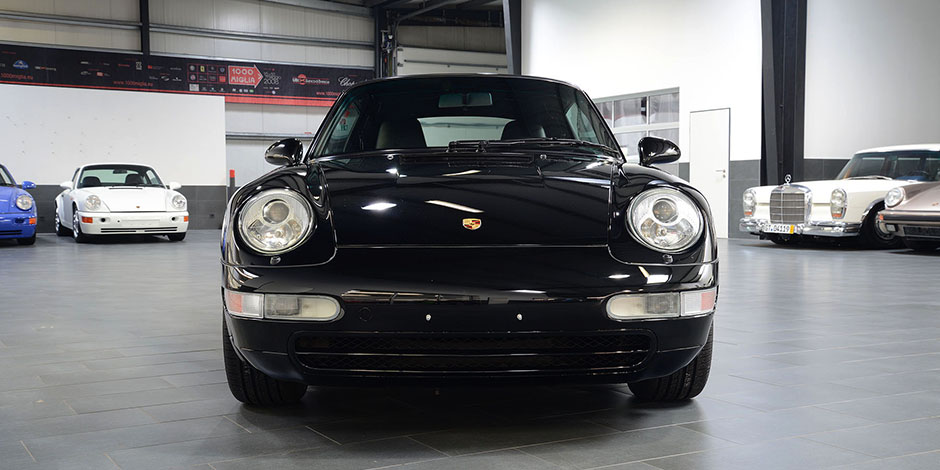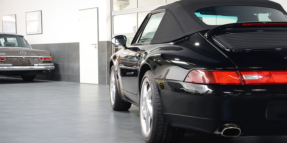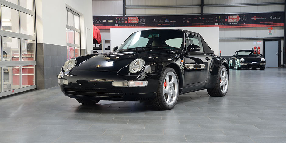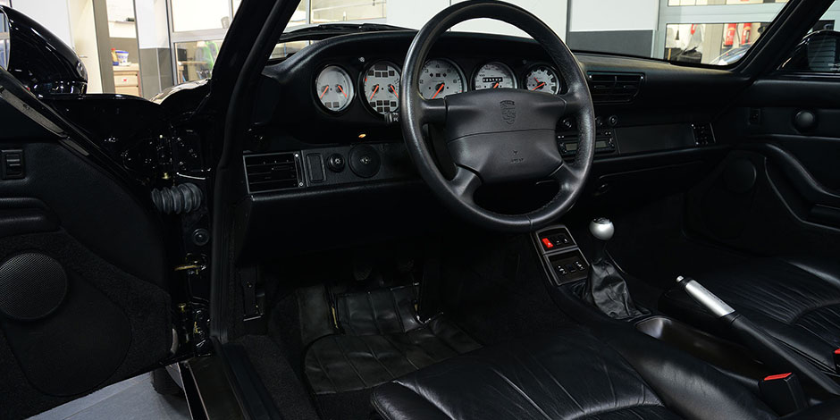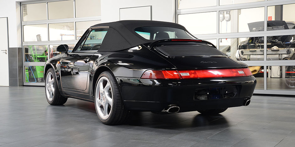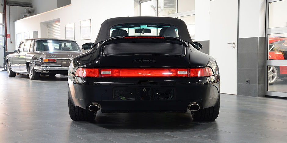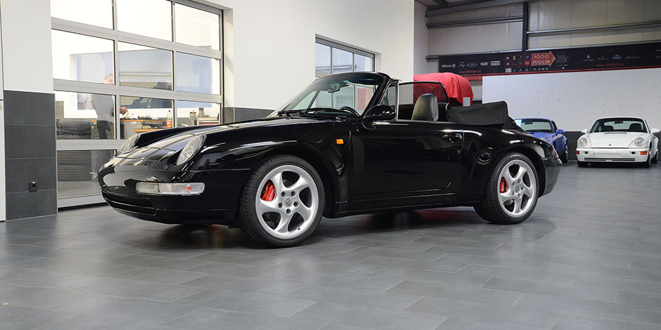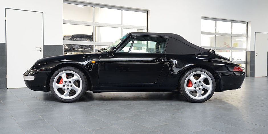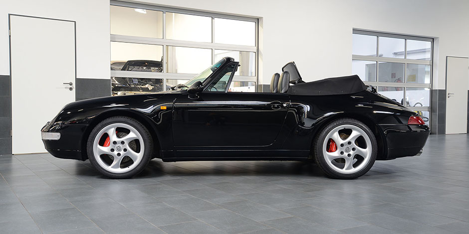 Porsche 993 Cabriolet in dreifach schwarz mit geringer Laufleistung aus dem letzen Baujahr.