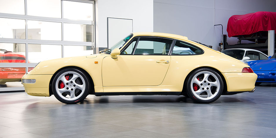 Porsche 993 Carrera 4S in der seltenen Farbe pastellgelb