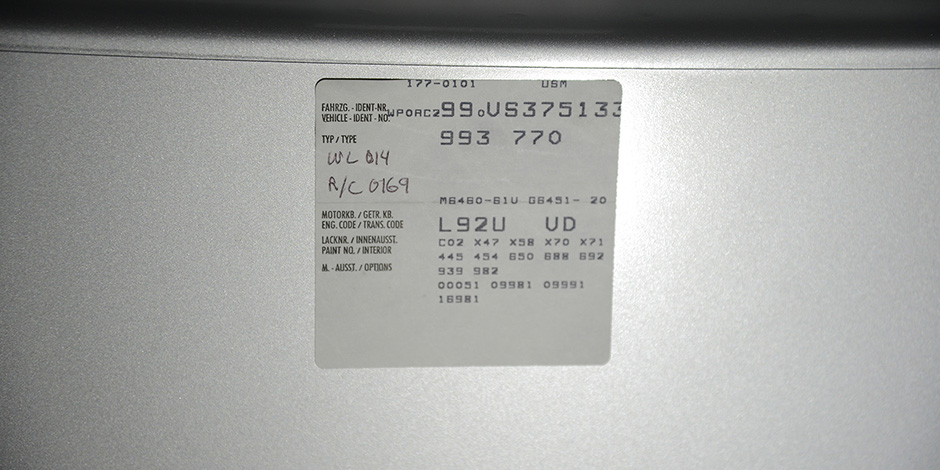 3. Bremsleuchte, CD-Wechsler, Frontscheibe mit Bandfilter oben, Innenraumüberwachung (Infrarot - System), Metallic-Lackierung, Radnaben - Abdeckungen Porschewappen farbig, Schiebedach elektrisch, Stoßfänger mit Aufpralldämpfer