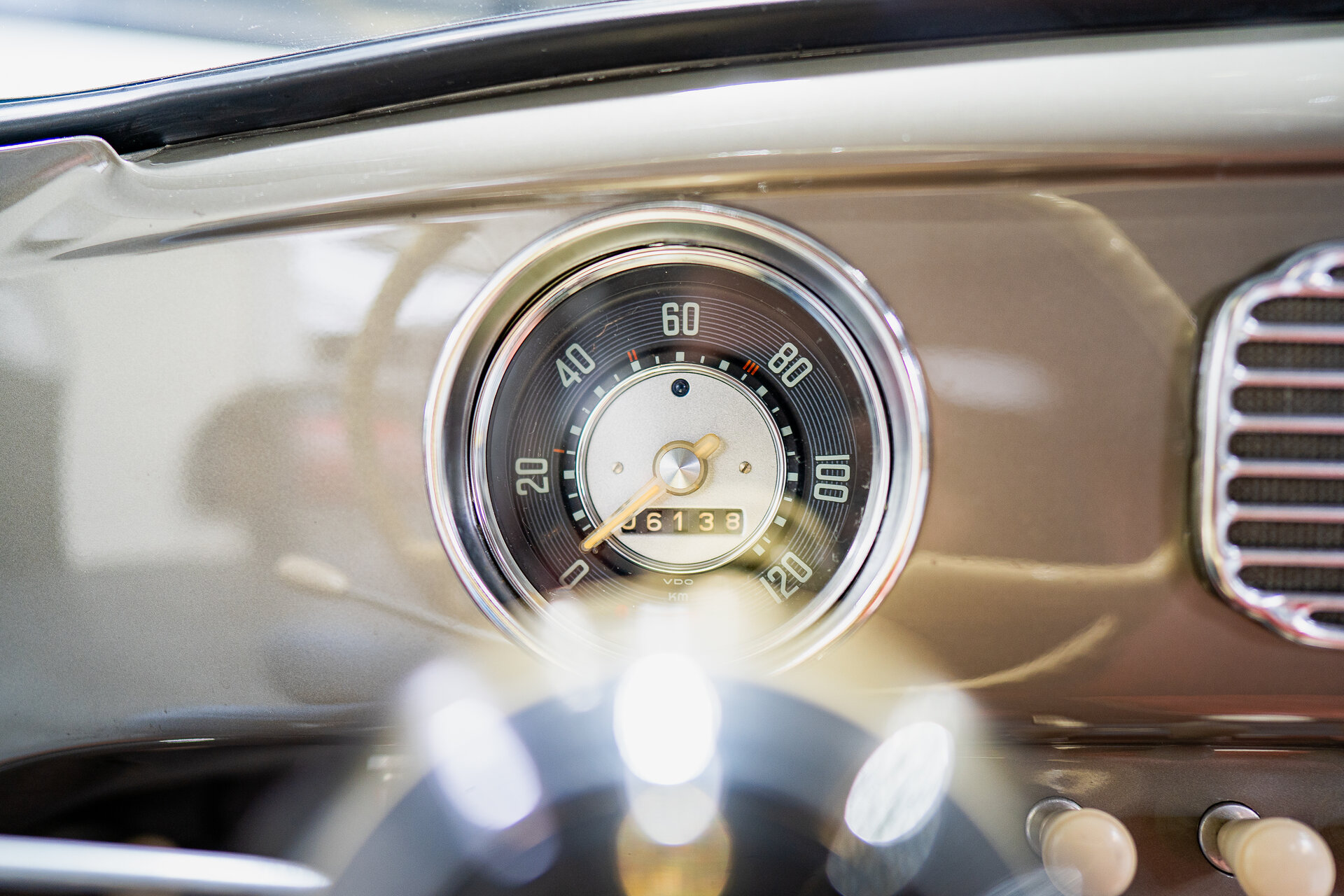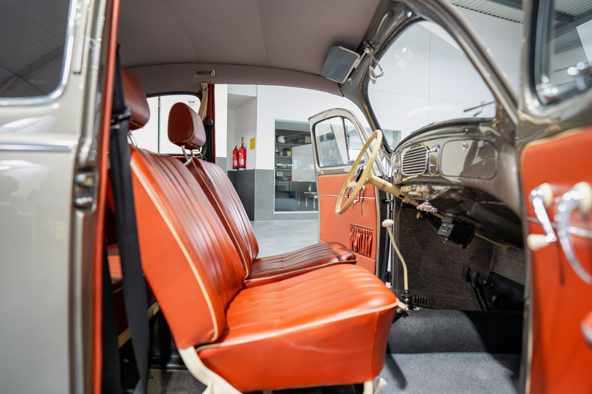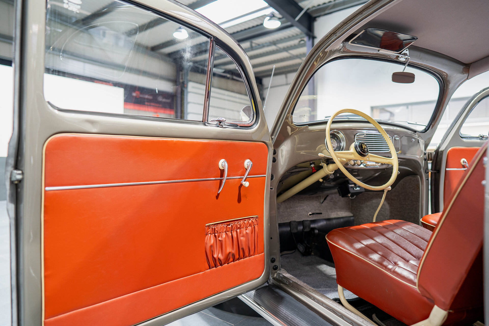 Nach einer liebevollen Restaurierung unter der Aufsicht des jetzigen Besitzers erstrahlt der Käfer in seinem Originalglanz und entspricht dem Auslieferungszustand. Diese Perfektion verlieh dem Fahrzeug 2014 die Berechtigung, an der prestigeträchtigen Mille Miglia teilzunehmen – eine Ehre, die es mit Stolz erfüllte.