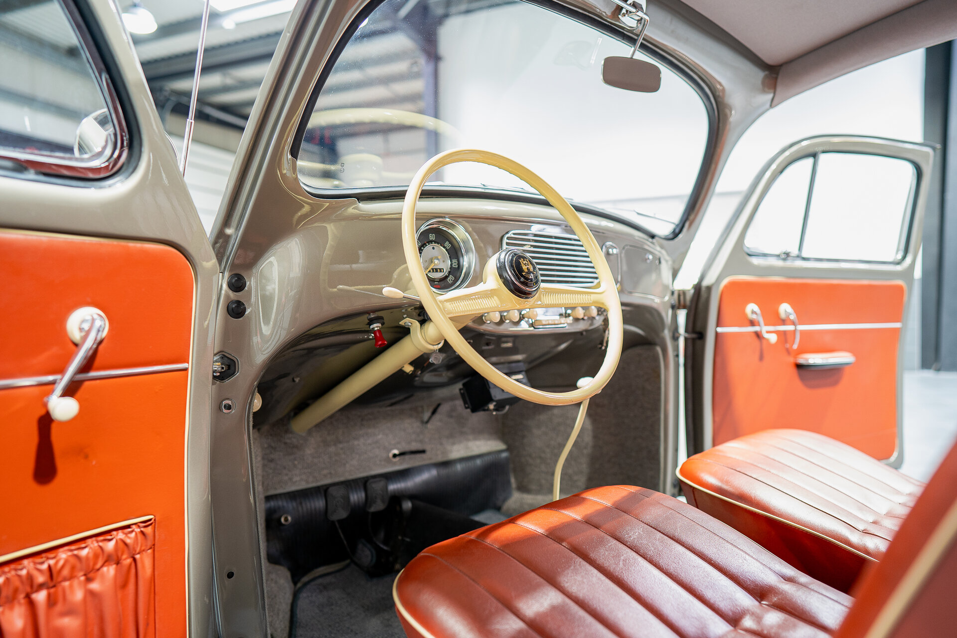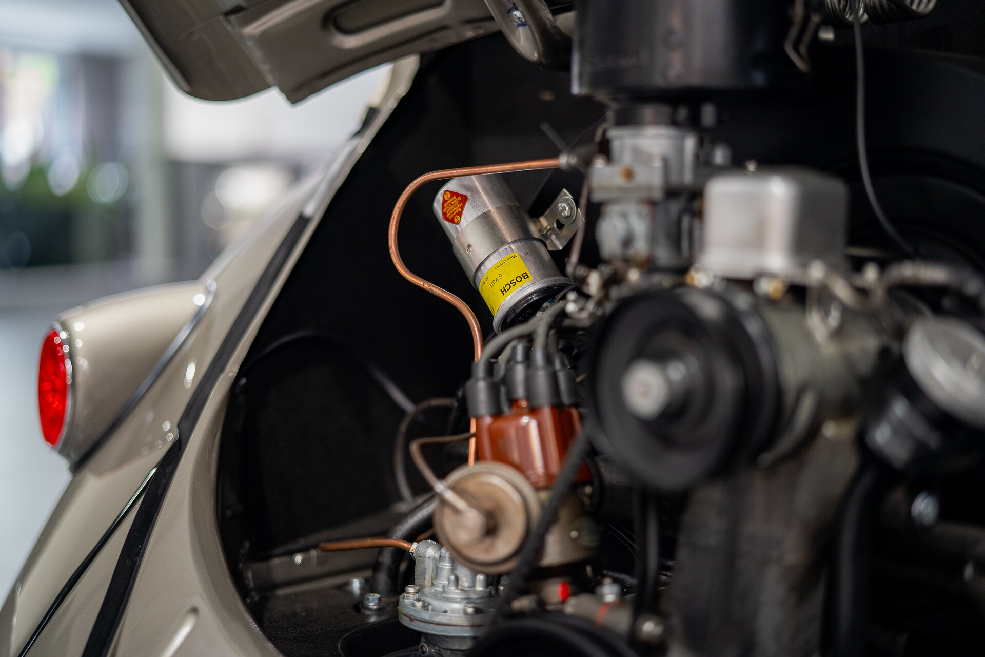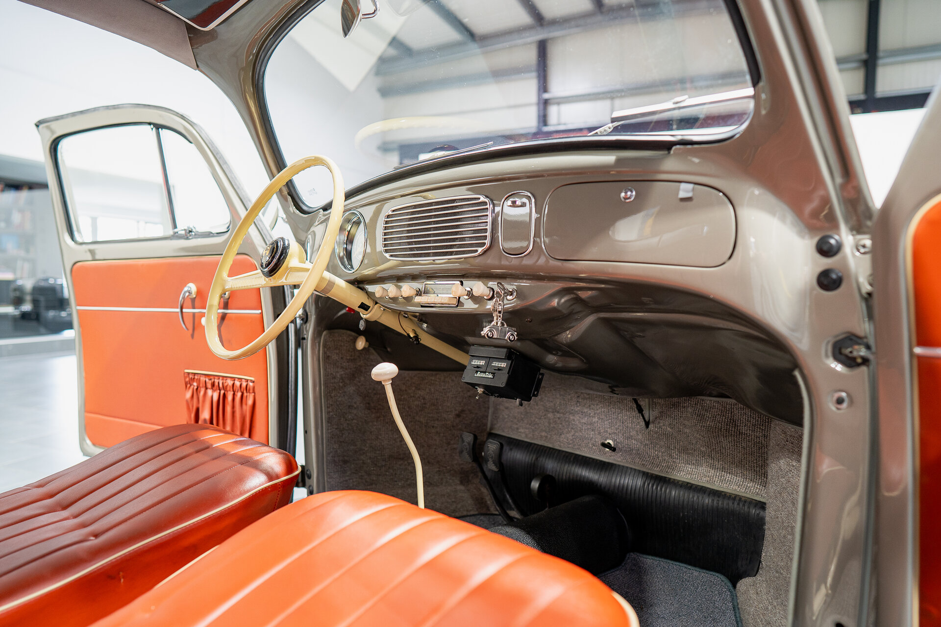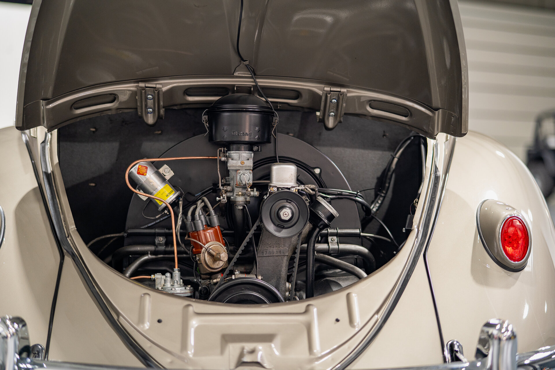 Nach einer liebevollen Restaurierung unter der Aufsicht des jetzigen Besitzers erstrahlt der Käfer in seinem Originalglanz und entspricht dem Auslieferungszustand. Diese Perfektion verlieh dem Fahrzeug 2014 die Berechtigung, an der prestigeträchtigen Mille Miglia teilzunehmen – eine Ehre, die es mit Stolz erfüllte.
