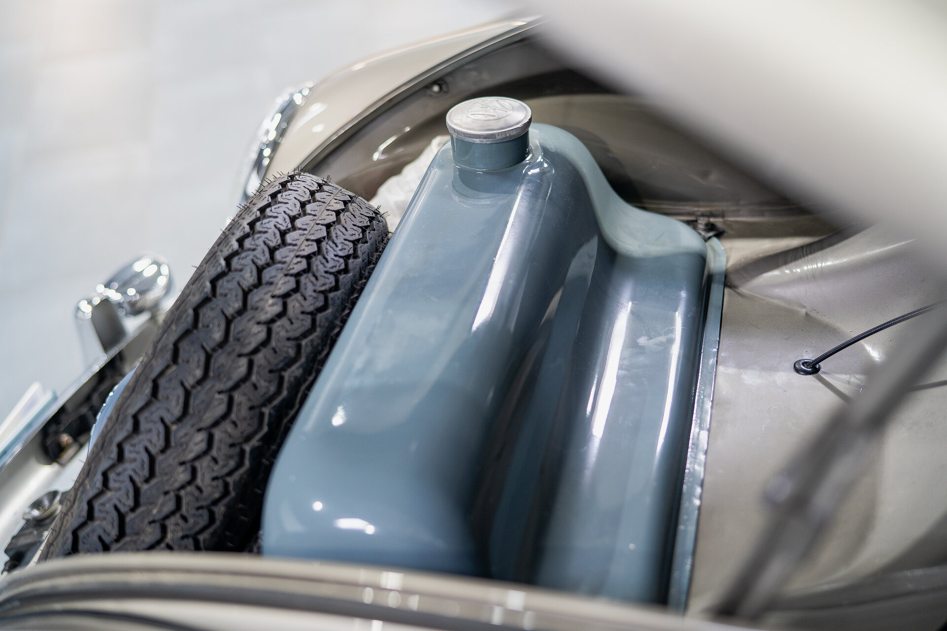 Umfangreiche Unterlagen zur Restauration, inklusive detaillierter Rechnungen, begleiten dieses Schmuckstück. Beim Erwerb des Fahrzeugs erhalten Sie einen Original Radsatz sowie einen Satz Mangels Felgen, die derzeit montiert sind.