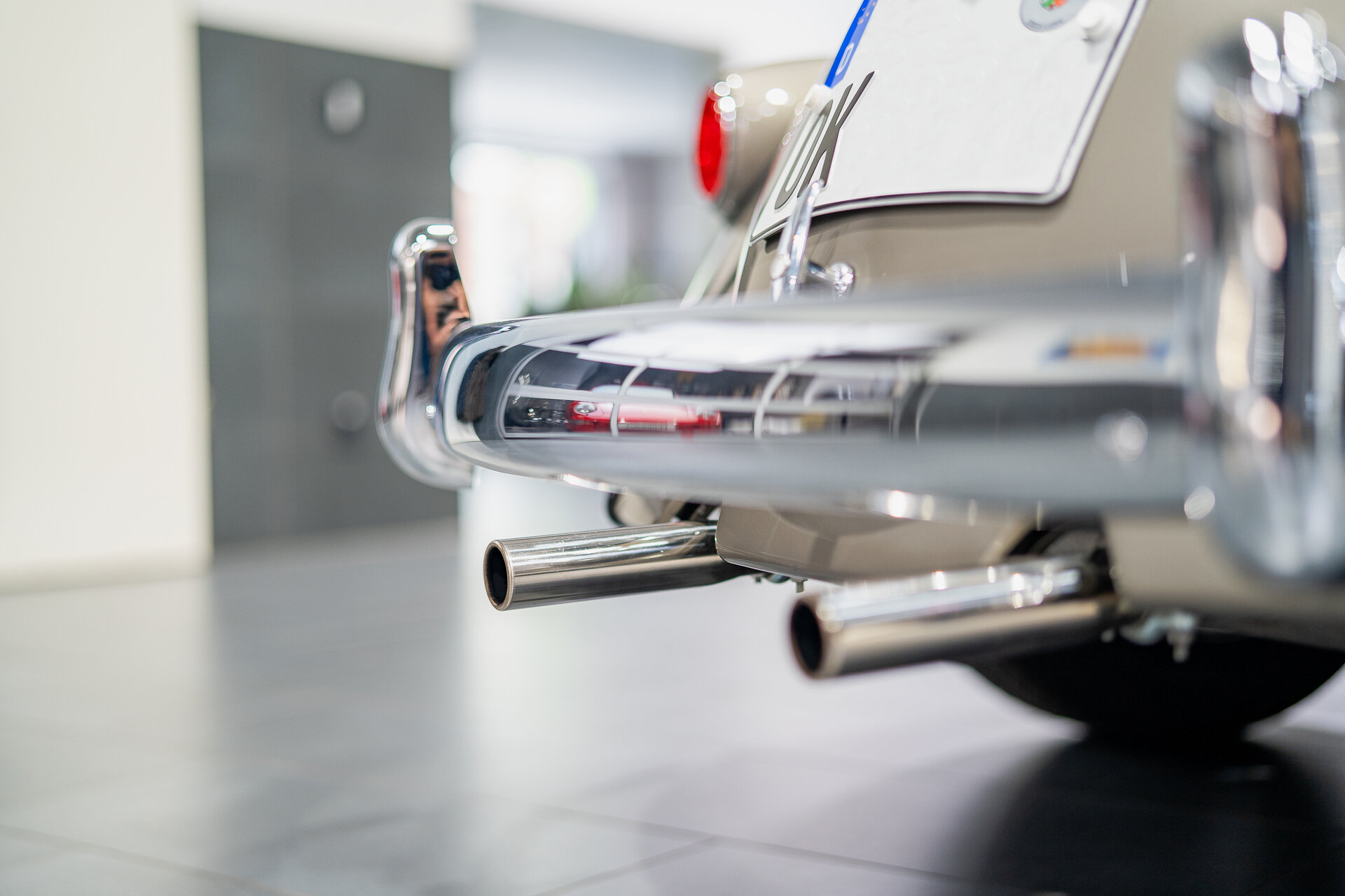 Dieses außergewöhnliche Fahrzeug ist nicht nur ein Blickfang, sondern auch ein Zeugnis seiner Zeit: Motor und Getriebe tragen die sogenannten "matching numbers", ein Beweis für die Originalität und Authentizität dieses Klassikers.