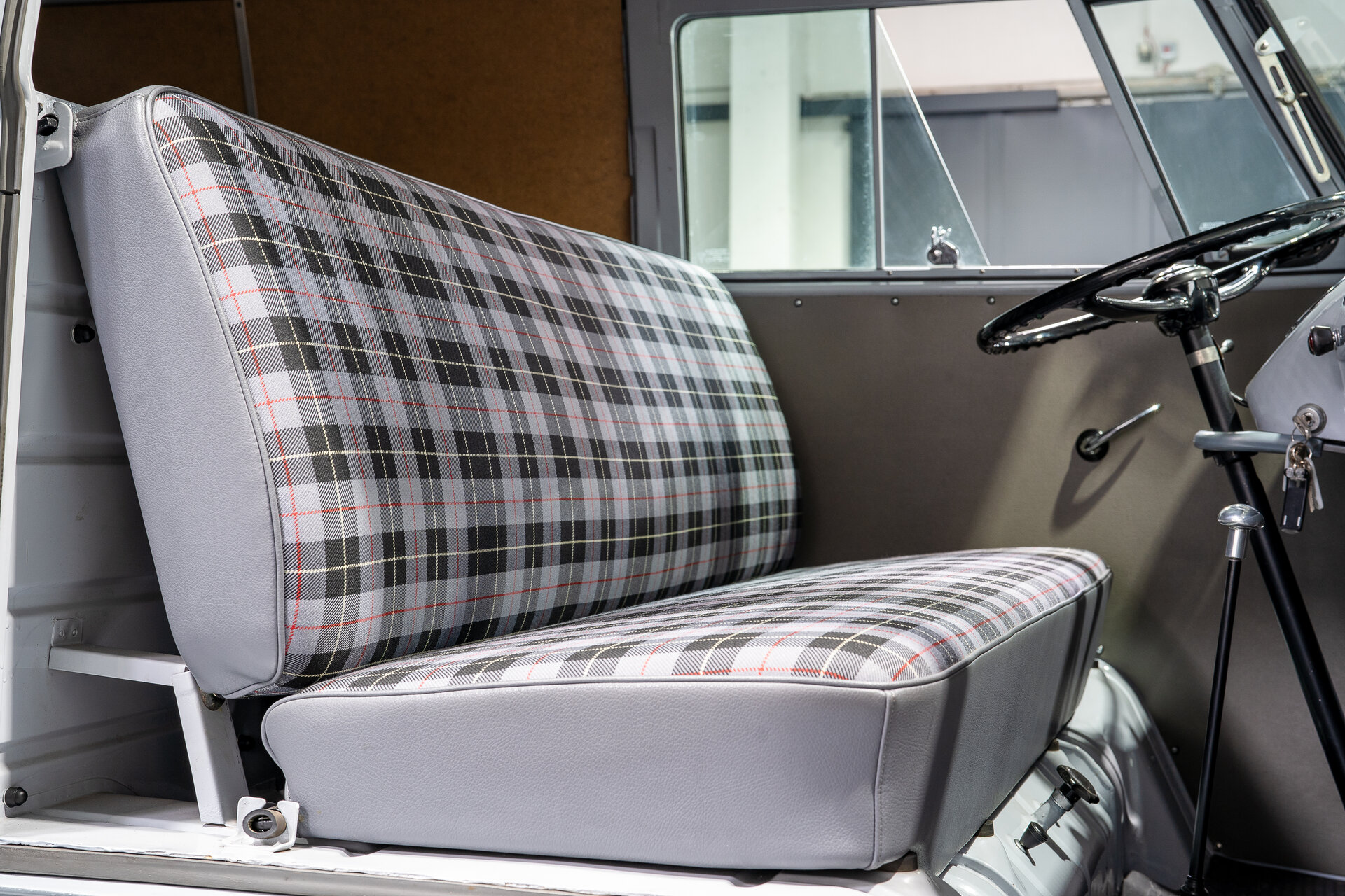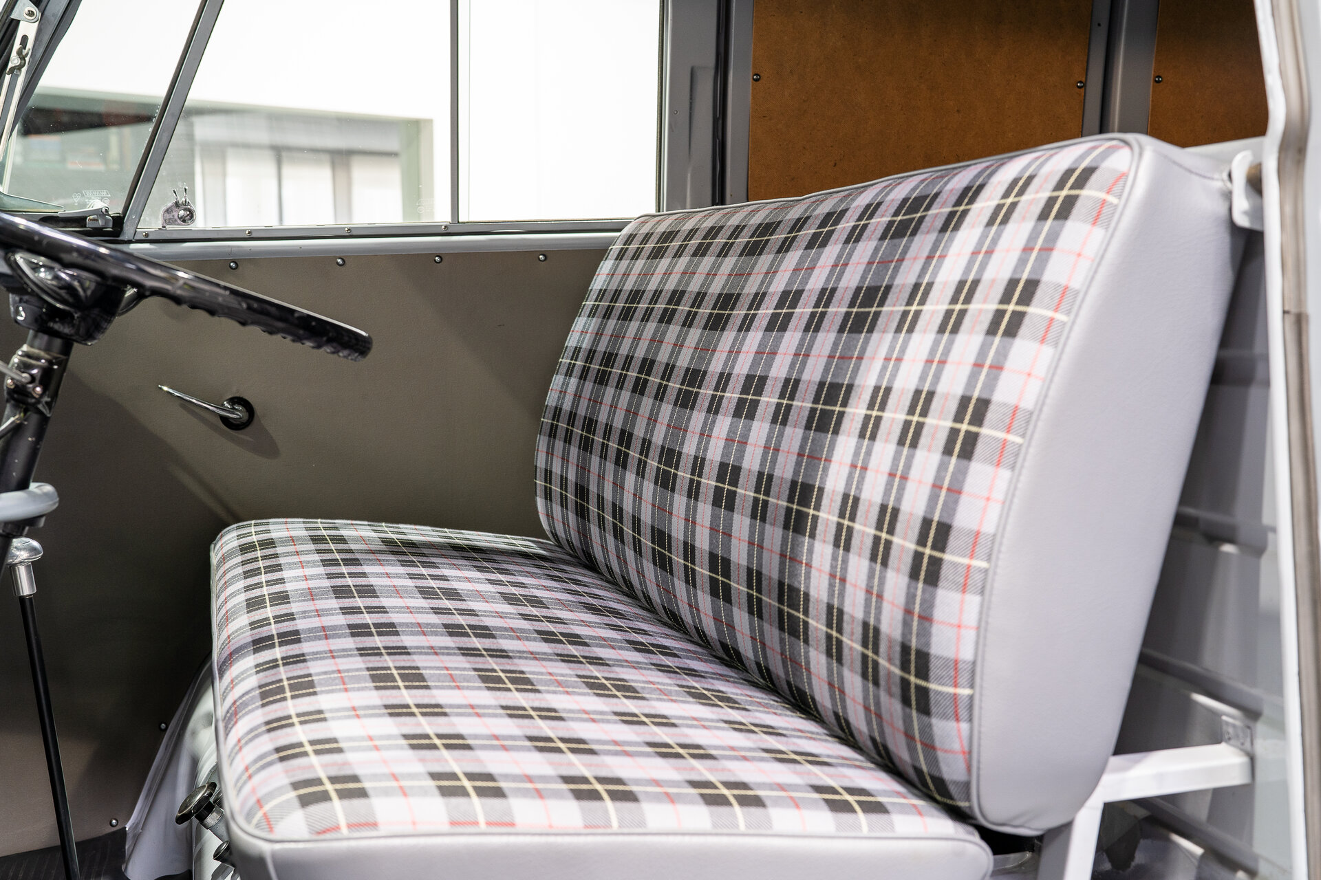 Sitzbank vorne und Notsitz hinten neu bezogen (Stoff von MB 300SL).